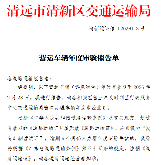 附件:清新区营运货车逾期年审催告清单202603.xls