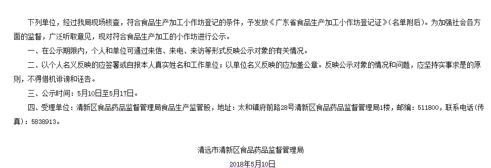 来源:清新区食品药品监督管理局 发布机构: 点击: