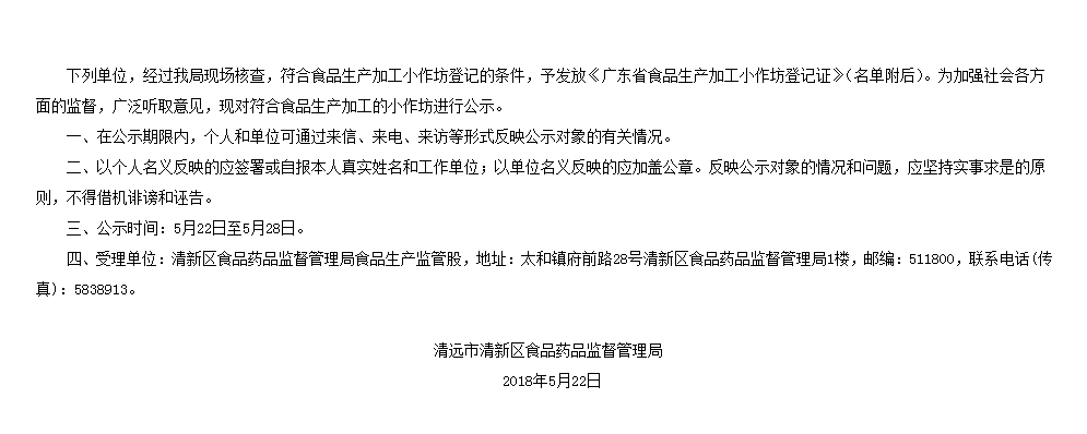 食品生产加工小作坊发证公示