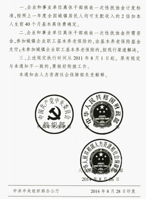 转发《中共中央组织部、财政部、人力资源社会保障部关于企业和事业单位离休干部病故一次性抚恤金有关问题的通知》的通知