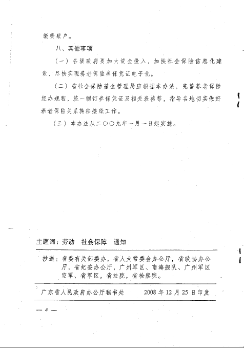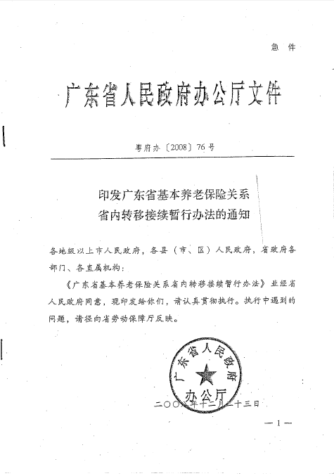 印发广东省基本养老保险关系省内转移接续暂行办法的通知(粤府[2008]76号)