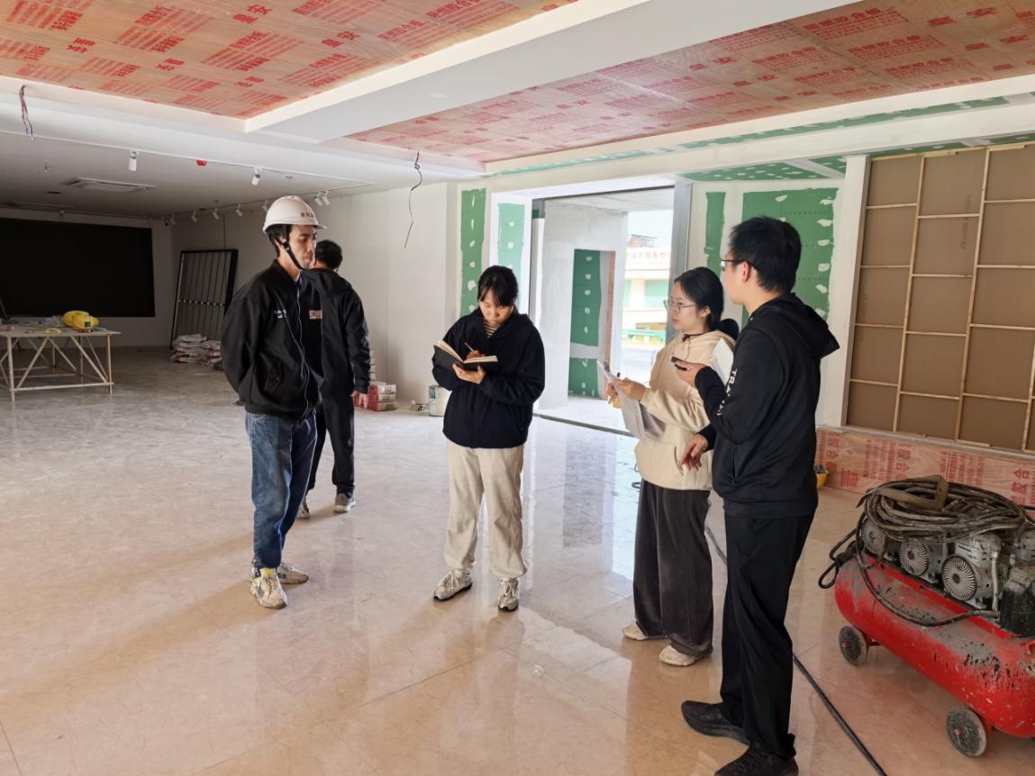 (审计组在项目施工现场与镇工作人员和施工方了解情况)