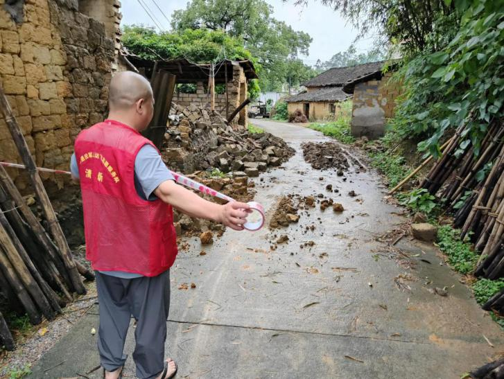 为防止接连强降雨造成地质洪涝灾害,退役军人志愿者以历史洪水多发区域为重点,在各安全隐患点设置安全警戒线,实地查看各处地质灾害隐患点,着重防范暴雨天气可能诱发的滑坡、崩塌灾害,最大限度保障人民群众的生命财产安全。