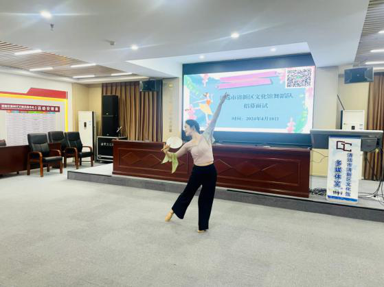 4月10日晚,清远市清新区文化馆在4楼多媒体室组织开展了面试选拔工作,由清远市清新区文化馆馆长黄庆红、清远市清新区舞蹈家协会主席谢金兰、舞蹈风暴全国青少年舞蹈艺术展演评委杨浩然担任此次舞蹈队招募面试的评委。