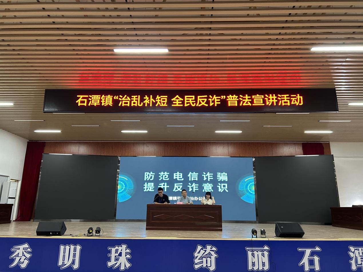 为切实保障广大群众财产安全,严厉打击电信诈骗犯罪,10月12日,石潭镇举办了“治乱补短 全民反诈”普法宣讲活动,通过以案促教、以案促治的方式,提高辖区群众的警觉性和识别能力,增强全民反诈的技能和防范能力,构建全民反诈体系。