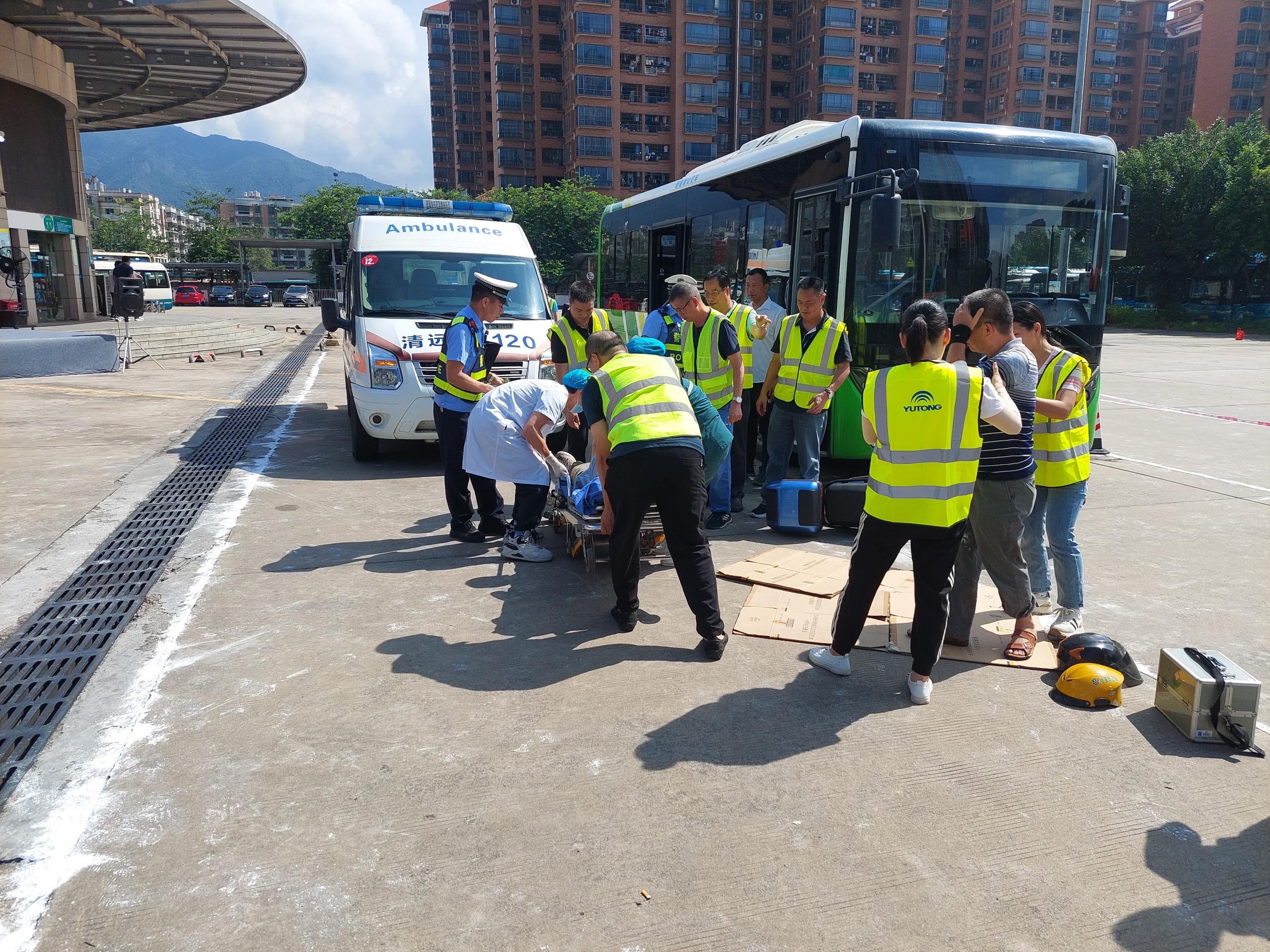 本次应急演练以公共汽车与电动单车在行驶过程中发生碰撞,导致电动单车驾驶人、公共汽车多名乘客受伤为模拟场景展开应急救援。应急演练设置了演练指挥组、应急救援小组、综合协调组、医疗救护组、后勤保障组等演练机构。在演练中,各组能够按照应急预案紧密配合,将演练模拟作为真实场景,全身心投入抢险应急,极具代入感,气氛紧张逼真。演练各步骤严格做到听从指挥、协调统一、沉着应对,特别是在伤员转移救治、事故现场秩序维护、乘客有序撤离等主要救援程序应急措施有效,施救得当,保障了群众生命安全。