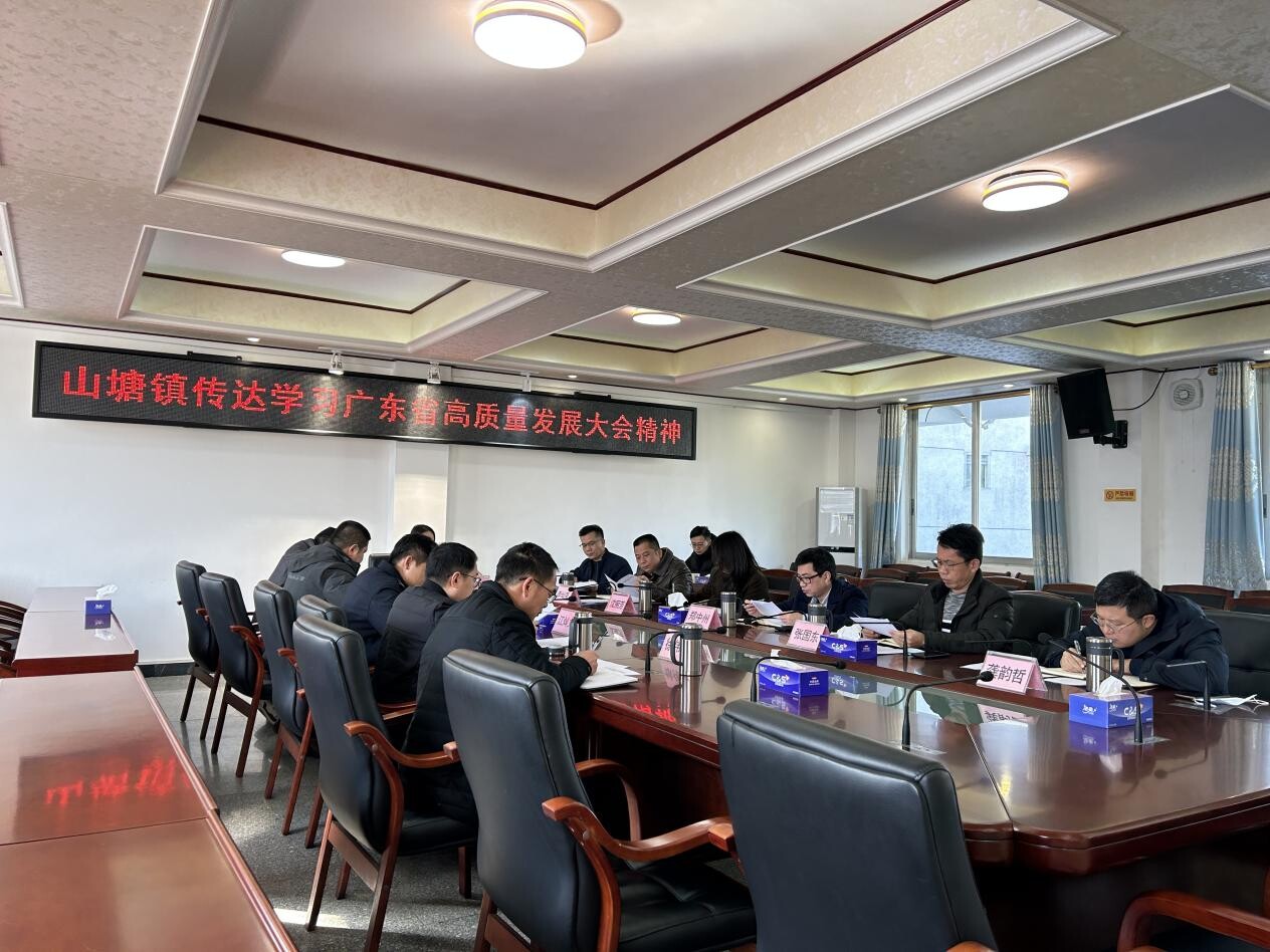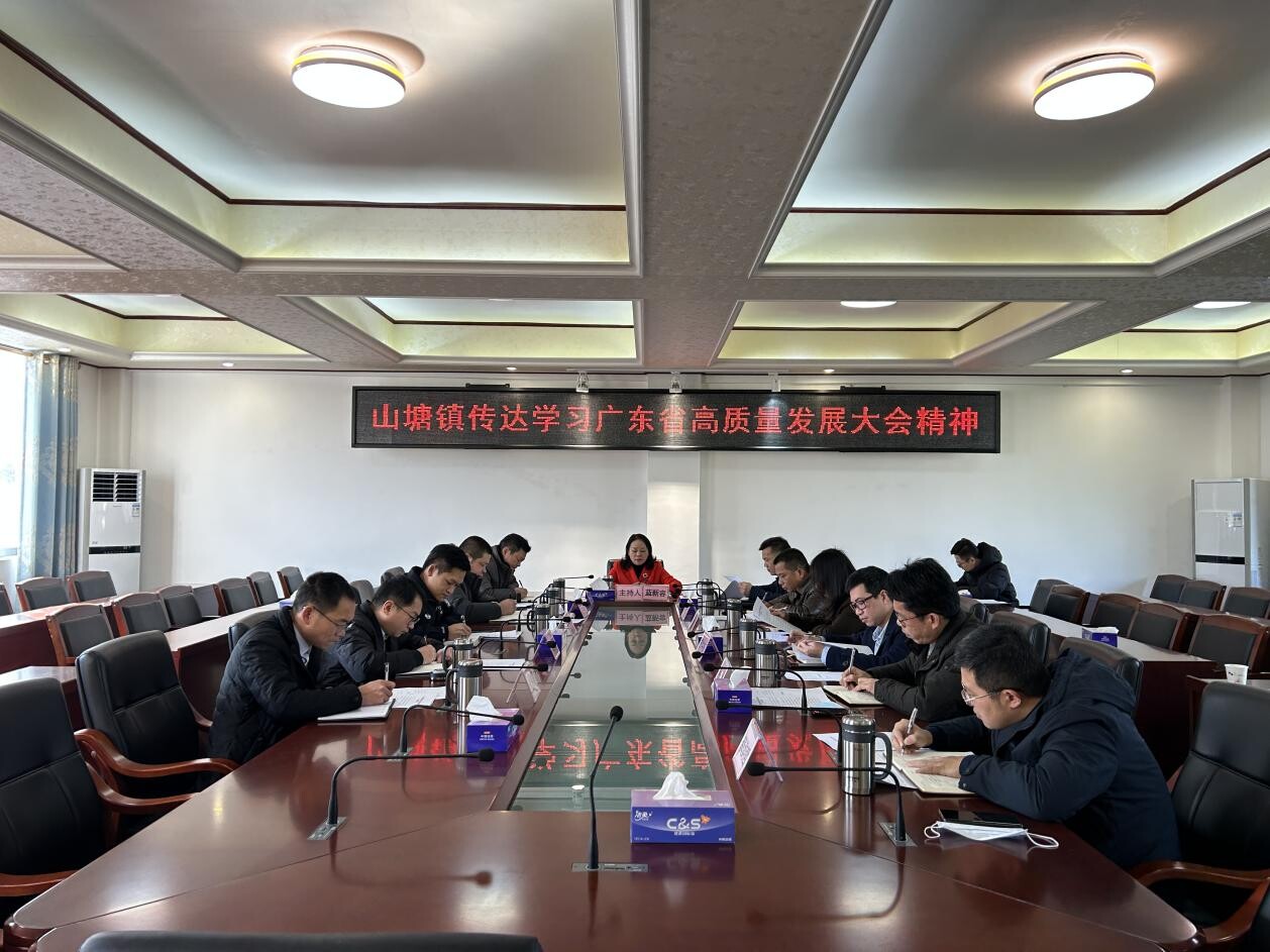 2023年1月29日上午,山塘镇召开专题会议,传达学习广东省高质量发展大会精神,镇委书记蓝新容主持并作强调讲话,全体在家班子成员参加了此次会议。