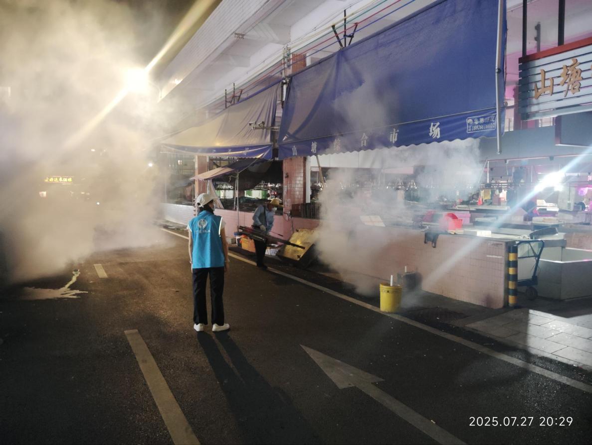 专业防治重点消杀。聘请专业病媒防治公司,在每天蚊虫聚集活动的7:00-9:00、16:00-19:00“黄金时段”,聚焦农贸市场、养老机构、机关单位、医疗机构、公园绿地、垃圾收集点等重点区域,开展全覆盖的集中消杀作业,截至目前消杀面积共23896平方米,有效降低蚊虫密度。