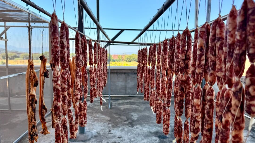 “我们凌晨四五点就去挑选好猪肉,只加简单的油、盐、糖、酱油和高度白酒腌制。”徐绍昌说,晾晒时间全靠经验把握,“腊肉和腊肠一般晒8天,猪脚要10到12天,视天气情况而定。”这份弥漫在全村的腊味香气,不仅是恒平村深厚的产业根基,更承载着村民共同的记忆与乡愁。
