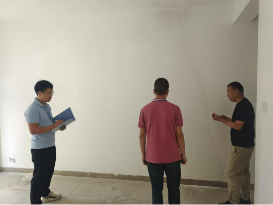 10月16日上午,清新区住房和城乡建设局对清新区太和镇飞水公租房小区新建公租房G、H、I进行验收前联合检查。住房保障管理股长阮世雄、住房保障中心主任黄健宇分别带领两组工作人员采用抽样方式进行入户检查,重点针对室内结构、用水用电设施安装、消防器材配置等进行检查,现场经检查发现I栋4楼房屋存在水管漏水现象,造成墙体有水印,未能达到房屋验收标准。工作组发现问题立即向工程施工部反馈,落实责任人在限定时间内对房屋修缮完成,确保房屋按时交付使用。