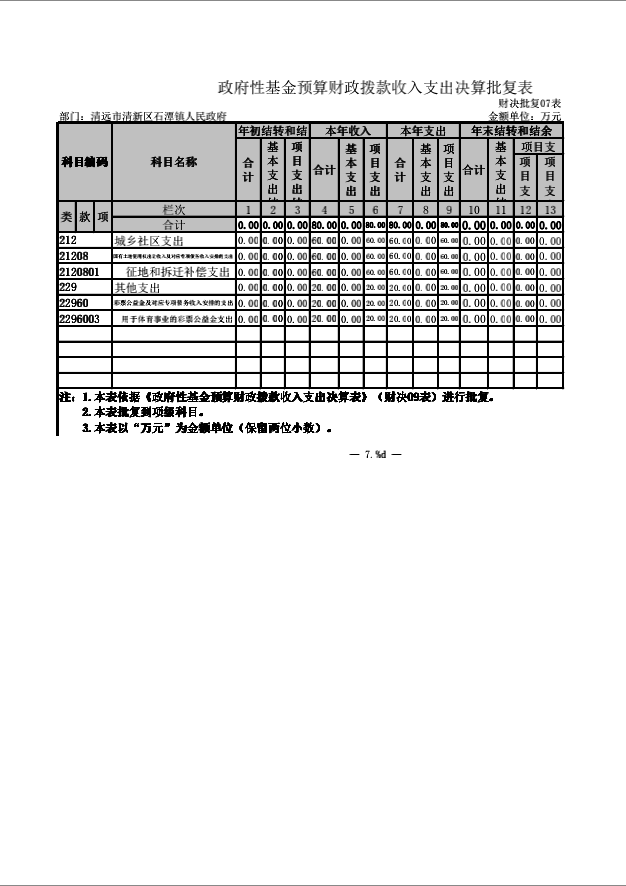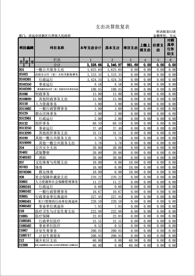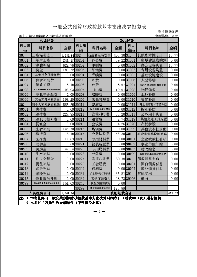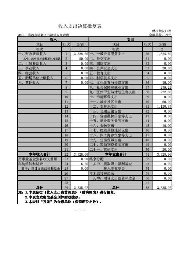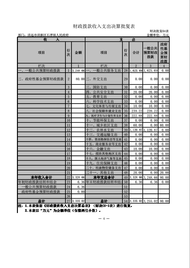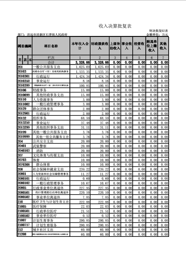 清远市清新区石潭镇人民政府收入支出决算批复表