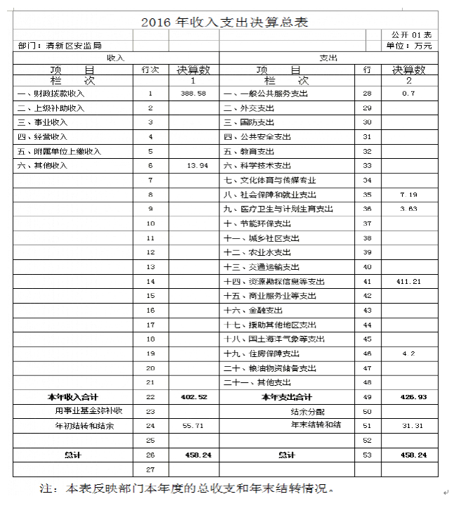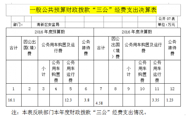 清新区安监局2016年部门决算公开
