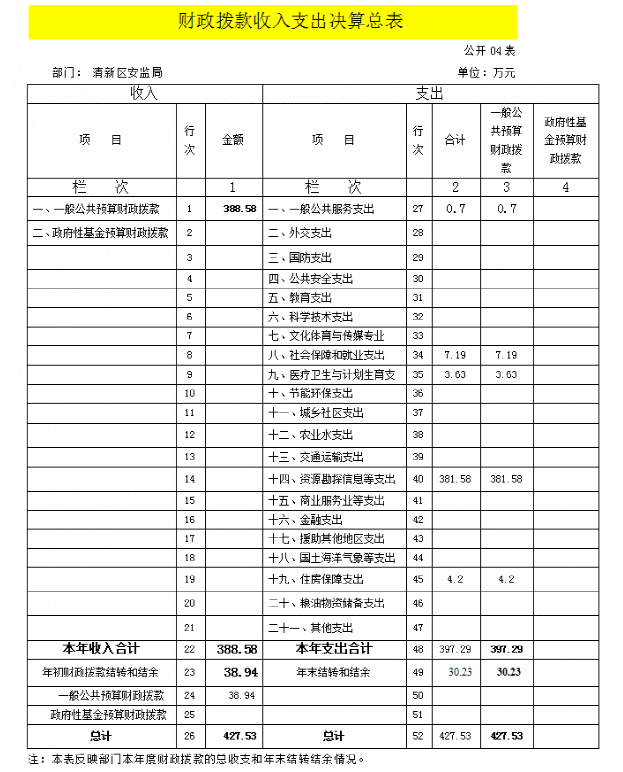四、财政拨款收入支出决算总表