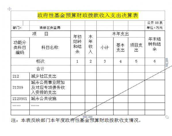 八、政府性基金预算财政拨款收入支出决算表