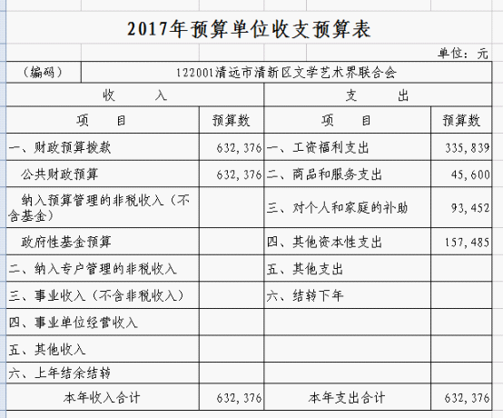 2017年清新区文联部门预算说明(整改后)