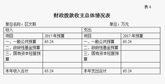 四、财政拨款收支总体情况表