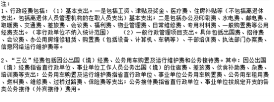 1、机关运行经费:是指各部门的公用经费,包括办公及印刷费、邮电费、差旅费、会议费、福利费、日常维修费、专用资料及一般设备购置费、办公用房水电费、办公用房取暖费、办公用房物业管理费、公务用车运行维护费以及其他费用。