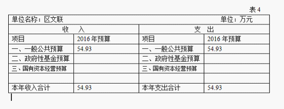 2016年本部门收入预算54.93万元,比上年增加10万元,增长18%,主要原因是工资福利有所上升。支出预算54.93万元,比上年增加10万元,增长18%,主要原因是工资福利支出有所上升。