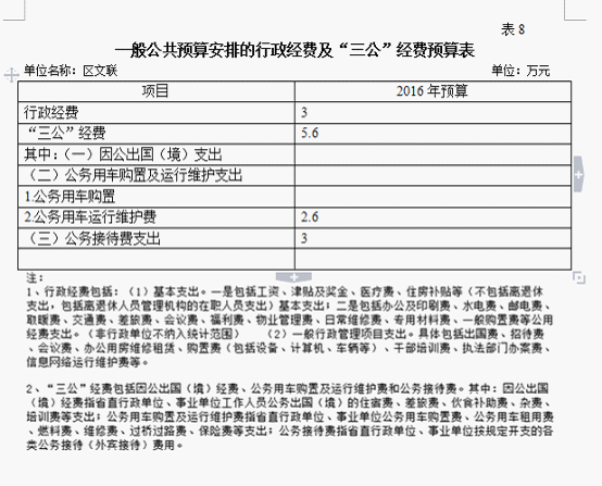 八、一般公共预算安排的行政经费及“三公”经费预算表