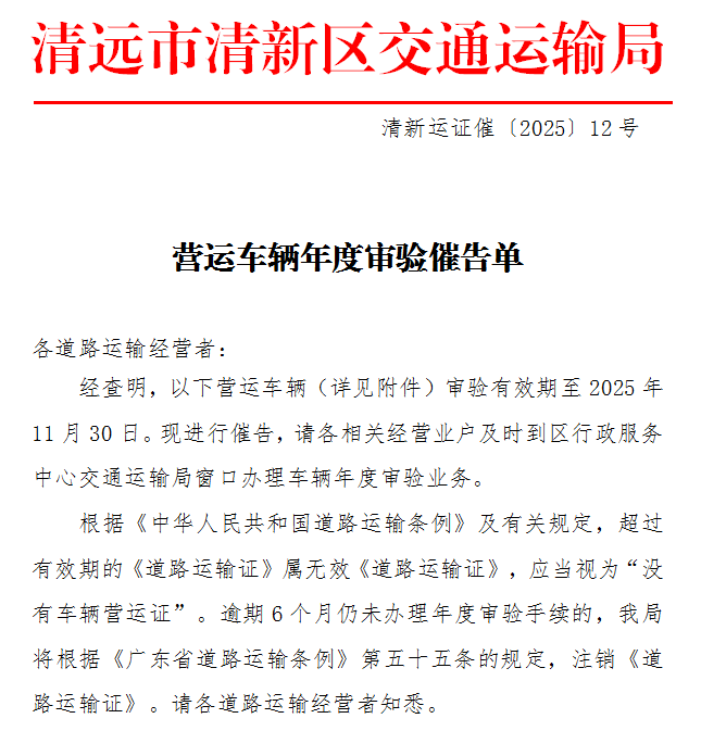 附件:清新区营运货车逾期年审催告清单202512.xls